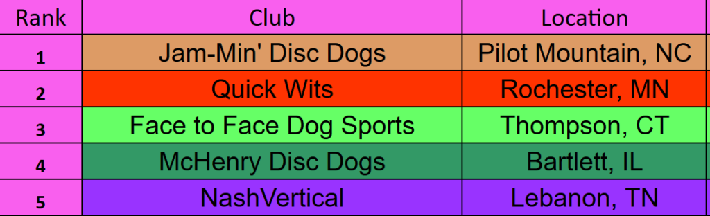 The results are in and official! Congrats to the Top 5 clubs, all of our top teams and everyone who got out there and had fun with their dogs – that is what it is all about!!